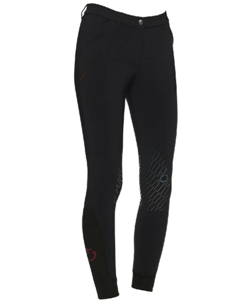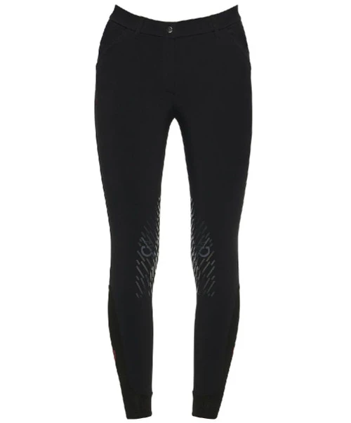 Cavalleria Toscana Team Red Stripe Knee Grip Breeches have technical function and a flattering fit for riders. Women’s horseback riding breeches are made with a luxury four-way stretch jersey that is incredibly comfortable. The fabric is highly breathable and allows total freedom of movement. Sporty Team Red Stripe accents on the CT logo and back pockets make these ladies breeches extra special.