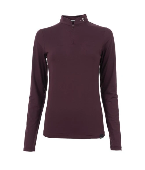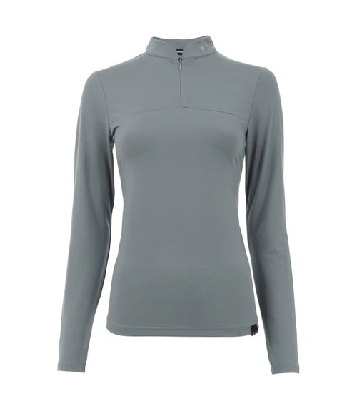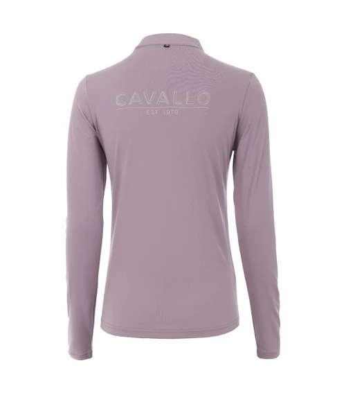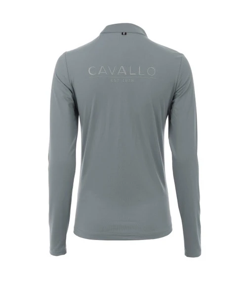 Cavallo Edera 1/4 Zip Tech Shirt for women has a sporty yet glamorous look and a silky feel that makes it an ideal baselayer. The Edera Quarter Zip Shirt delivers Cavallo technical features like breathable, odor resistant, and moisture wicking fabric. Ladies long sleeve riding shirt has beautiful silver accents including a raised Cavallo logo on the back.