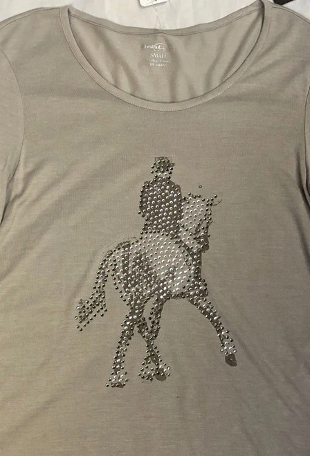 The elegant crystal horse and rider design on the Chestnut Bay Crystal Dressage Top will catch your eye but the dreamy silky soft stretch fabric will capture your heart! The super soft lightweight fabric is almost too good to be true, and yet, here it is, just waiting to pair with your favorite jeans or breeches, Wear it for riding or to express classic equestrian style for your casual wardrobe.