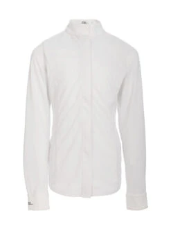Women’s Horseware AA Porto Competition Shirt is perfect for any arena with its crisp white collar and cuffs and beautiful fit. The long sleeve show shirt from Horseware Ireland is part of the Alessandro Albanese AA Platinum Collection featuring sophisticated designs, fabrics, and tailoring. The Porto Competition Shirt is silky stretch tech jersey with a textured stretch pique bib and piping. Mary’s has the Porto Shirt in White and Navy.