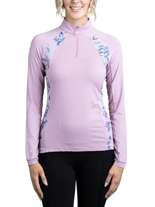 Kastel Denmark Fleurs Panel Shirt Long Sleeve is a fresh new sun shirt style in dreamy Lilac with floral printed vertical panels. Kastel 1/4 zip shirts are the perfect lightweight sun protective riding shirts for women with so many great features. Kastel sun shirts at Mary’s are popular for their ultra light fabric and UPF 30+ skin protection. Gorgeous colors and prints like the Fleur Panel Shirt make them must-haves each season.