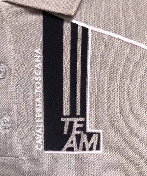 Cavalleria Toscana Kids Team Raceway Training Polo in grey or navy cotton pique has exclusive CT graphics for elevated style. Boys and girls will love the sporty racing flocked graphic print in front and the quality cotton knit. Children’s short sleeve casual horse riding polo shirt has natural stretch and breathable comfort.