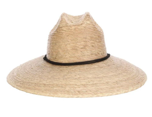 Dorfman Overcast Lifeguard Hat offers ample coverage all around. The chin cord with plastic adjuster helps keep it in place and the pinched crown with metal eyelets allows air circulation for a cooler head. The soft elasticized sweatband is comfortable and ensures a good fit. The palm leaf Dorfman Overcast Lifeguard Hat for men is naturally water resistant as well as UV protective. The Natural color sun hat is finished with a brown braided rope hat band and chin cord.